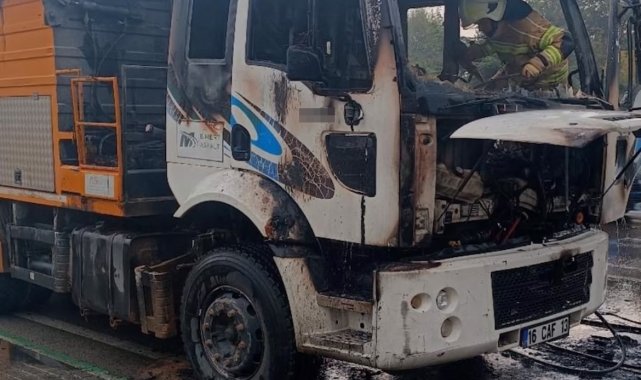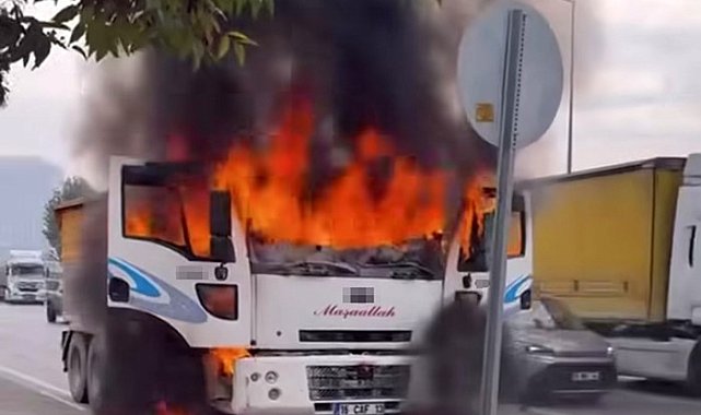 Bursa Çevre Otoyolu'nda seyir halindeki bir kamyonda yangın çıktı. Alevler kısa sürede tüm aracı sararken, o anlar cep telefonu kamerasına yansıdı.