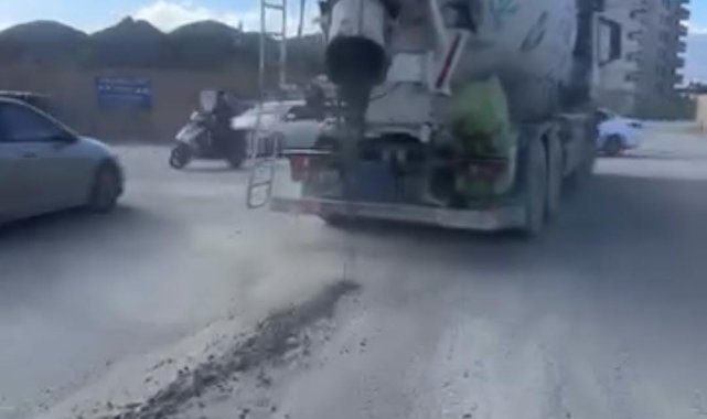 Hatay'da seyir halindeyken yola beton döken mikserin o anları kameraya yansıdı.Olay, Antakya ilçesi Küçükdalyan Mahallesi'nde yaşandı. Trafikte seyir halinde olan beton mikseri, aniden yola beton döktü. Mikserden yola beton döküldüğünü fark eden diğer araç sürücüleri duruma tepki göstererek o anları kayıt altına aldı. Görüntülerde; mikserin trafikte ilerlerken aniden kovasından yola beton döküldüğü anlar cep telefonu kamerasına kaydedildi. Görüntülerin sosyal medyada paylaşılması üzerine Trafik Şube Müdürlüğü harekete geçerek inceleme başlattı."Beton mikseri önümde seyir halindeyken aniden kovasından yola beton döktü"Trafikte ilerlerken mikserin aniden yola beton döktüğünü ifade eden vatandaş Ali Barburoğlu, "Ben arabamla sanayiye doğru gidiyordum. Beton mikser aracı önümden seyir halindeydi. Aniden mikserin kovasından yola beton dökülüyordu. Arabada olanlara bir şey olmaz ama motosiklet sürücüleri için tehlike arz ediyor. Mikser yola beton dökerek ilerliyordu. Mikser sürücüleri kovalarını kapatarak trafiğe çıkmalılar. Ekipler sonra gelerek betonu temizlediler" ifadelerini kullandı.