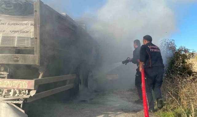Afyonkarahisar'da lastikleri yanan tır itfaiyenin zamanında müdahalesiyle büyümeden söndürüldü.Olay, Sandıklı ilçesi çıkışında meydana geldi. Edinilen bilgilere göre, M.K., idaresinde ki 43 SP 371 plakalı tır trafikte seyir halindeyken dorsesinde bulunan lastiklerinden bir anda dumanlar yükselmeye başladı. Durumu fark eden sürücü aracı yol kenarına park ederek itfaiyeye haber verdi. Balataların şişmesi ile birlikte lastiklerin alev alması ile başlayan yangın çevrede paniğe neden olurken, yangına ilk müdahaleyi yangın tüpü ile vatandaşlar yaptı. İhbar üzerine kısa sürede olay yerine gelen itfaiye ekipleri ise kısa sürede yangını kontrol altına aldı. Yangın ekiplerin yaklaşık yarım saat süren müdahalesinin ardından kontrolden altına alındı. Yangın sonrası tırın dorsesinde büyük çapta maddi maddi hasar meydana geldiği belirtildi.