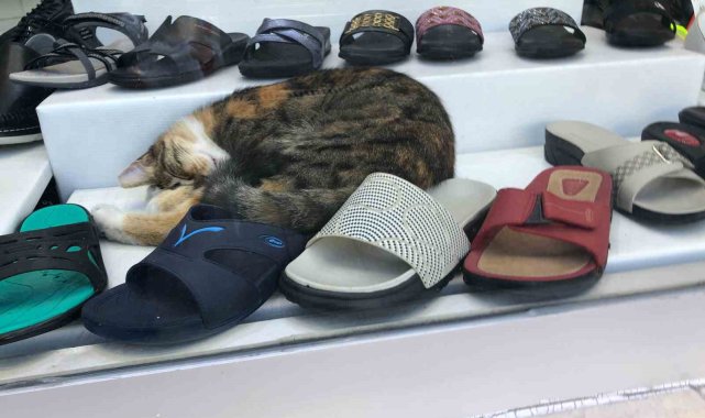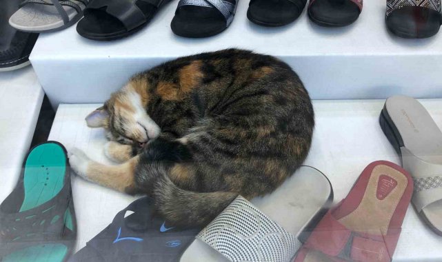 Eskişehir'de sıcaktan bunalarak serinlemek için çevrede bulunan ayakkabı dükkanının vitrinine sığınan kediyi gören vatandaşları gülümsetti.Sıcaklıkların artması şehirde bulunan vatandaşların yanı sıra hayvanları da etkiledi. Bu esnada sıcaktan bunalan bir kedi çareyi İki Eylül Caddesi'nde bulunan bir ayakkabı dükkanında buldu. Gölgede kalan vitrinde serinlemeye çalışan kedi o esnada dükkanın önünden geçen vatandaşların dikkatini çekti. Vitrinde bulunan ayakkabıların arasında neredeyse kamufle olan kedi ortaya komik bir görüntü çıkardı.