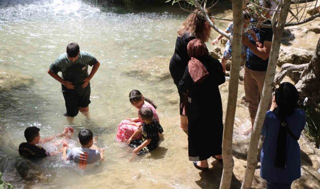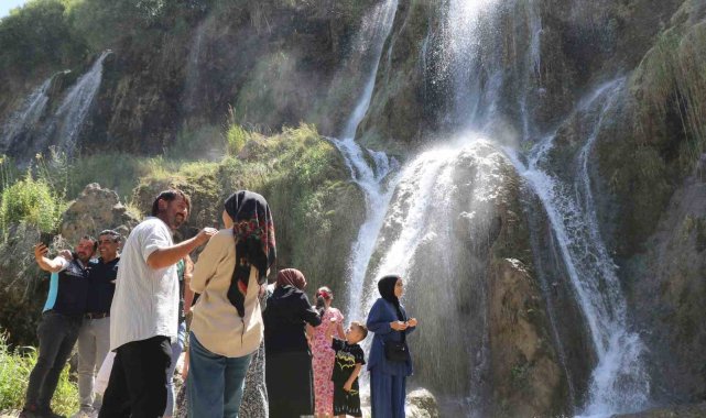 Sıcaktan kaçan şelalede serinledi