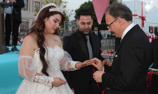 Siirt İl Emniyet Müdürlüğü tarafından hayata geçirilen "Sağdıcım Polis Olsun Projesi" kapsamında 40 çift için toplu nikah töreni düzenlendi.Siirt Emniyet Müdürlüğü hizmet binasında gerçekleştirilen tören, renkli görüntülere sahne oldu. Proje kapsamında evlenen çiftlere gelinlik, damatlık ve çeşitli beyaz eşyalar hediye edildi. Törene, kamu kurum ve kuruluşlarından temsilciler, emniyet mensupları, davetliler ve çiftlerin yakınları katıldı. Nikah merasiminin ardından düzenlenen eğlence programında halaylar çekildi, katılımcılar ve yeni evli çiftler unutulmaz bir gün yaşadı.Törende konuşan Siirt Valisi Dr. Kemal Kızılkaya, 2025 yılının "Aile Yılı" ilan edilmesinin önemine dikkat çekerek, bu yıl boyunca aile yapısının güçlendirilmesi, aile birliğinin korunması ve milli-manevi değerlerle beslenmesi herkes için temel bir öncelik olması gerektiğini söyledi. Kızılkaya, "Birlikte nice güzellikleri paylaşacağımız, umutla ve sevgiyle kurulan bu yuvanın da, vatanına, milletine, bayrağına ve devletine bağlı bireyler yetiştireceğine inancım tamdır. Bugün attığınız bu imzalar sadece bir evliliğin değil, aynı zamanda toplumsal birlikteliğin, sevgi ve sadakatin de sözüdür. Genç çiftlerimize ömür boyu saadetler diliyorum" dedi.Siirt İl Emniyet Müdürü Necmettin Öztürk, ailenin toplumun temeli olduğunu vurgulayarak, burada milletin temeli olan ailelerin kurulmasına şahitlik ettiklerini ifade etti. Bugün 80 gencin evet diyerek 40 yuvanın temelini attığını kaydeden Öztürk, "Cumhurbaşkanımızın 2025 yılını "Aile Yılı" ilan etmesi bu merasimi düzenlememiz için en büyük motivasyonumuzdur. Çünkü biliyoruz ki güçlü aile olmadan güçlü Türkiye olmaz. Bugün Siirt Emniyet Müdürlüğü bahçesinde kurulan her çadır birliğimizin, kardeşliğimizin, ortak geleceğimizin çadırıdır" diye konuştu.Nikahları kıyılan Selahattin ve Rojin Demir çifti mutluluklarını paylaşarak, "Bu anlamlı töreni düzenlediği için başta Siirt Emniyet Müdürümüz olmak üzere emeği geçen herkese teşekkür ederiz. Sayelerinde biz de nikahımızı kıydık. Tören boyunca her şey çok güzel ve özenliydi. Siirt Emniyet Müdürlüğü'nde hayatımızın en özel anını yaşadık. Başta valimize ve emniyet Müdürümüze teşekkürlerimizi sunarız. Darısı tüm bekarların başına" ifadelerinde bulundu.