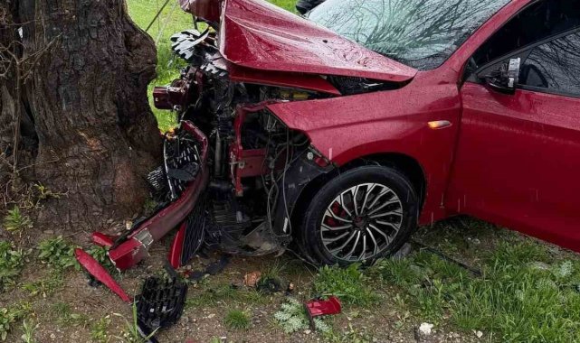 Siirt'te meydana gelen kazada kontrolden çıkarak ağaca çarpan otomobilin sürücüsü yaralandı.