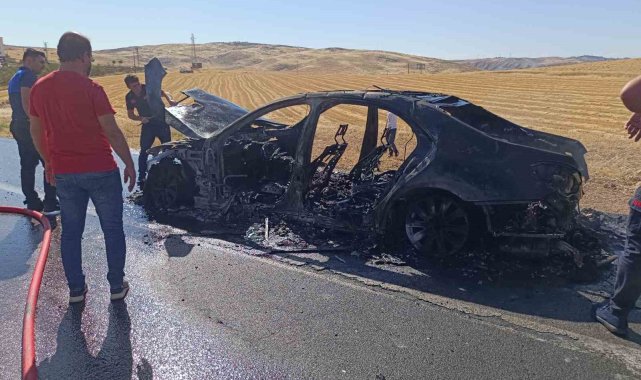 Siirt'in Kurtalan ilçesinde seyir halindeyken alev alan otomobil küle döndü.