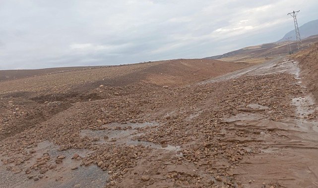 Siirt'te yağışla birlikte oluşan heyelan yola böyle aktı