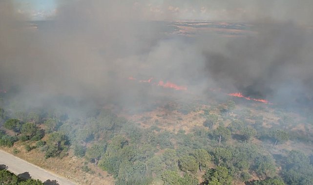 Silivri'de tarım alanlarında çıkan rüzgarın etkisiyle büyüyerek ormanlık alana sıçrayan yangını söndürme çalışmaları havadan ve karadan sürüyor.