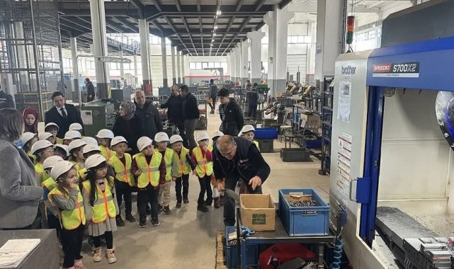 Proje kapsamında Simav İlçe Milli Eğitim Müdürü İsmail Güven, Şerife Narin Koyuncuoğlu Anaokulu öğrencileriyle birlikte bir sanayi tesisini ziyaret etti. Minikler, üretim süreçlerini yerinde inceleyerek, çalışanların iş ortamını gözlemledi. Ayrıca, çalışanlarla sohbet eden çocuklar, mesleki eğitimin önemine dair ilk bilgilerini aldı.