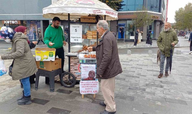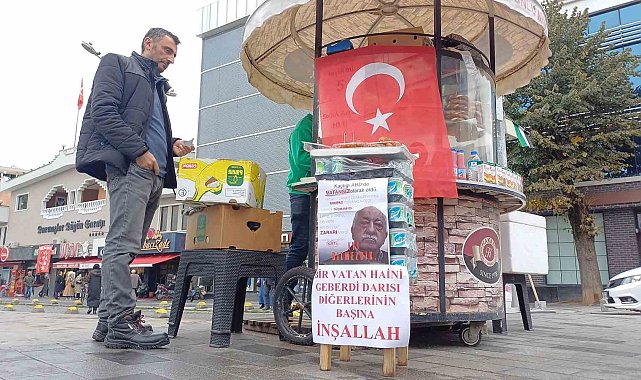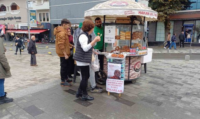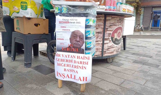 Düzce'de bir simitçi, FETÖ elebaşı Fethullah Gülen'in ölümünü vatandaşlara tatlı dağıtarak kutladı.Düzceli simitçi Ercan Biltaş, FETÖ elebaşı Fetullah Gülen'in ölüm haberinin ardından vatandaşlara tatlı dağıtmaya karar verdi. Biltaş, simit tezgahına Türk bayrağı ve "Kaçtığı ABD'de vatansız olarak öldü. Hayatı, Türkiye Cumhuriyetine kumpas kurmakla geçti. Türkiye düşmanıydı" "Dine, millete, devlete en büyük zararı verdi. Hesap vermeden gitti. İyi bilmezdik" "Bir vatan haini geberdi. Darısı diğerlerinin başına inşallah" yazılı pankartlar astı."İçimize az da olsa su serpildi"Biltaş, yaptığı açıklamada, "15 Temmuz'un planlayıcısı bir vatan haininin ölümüyle yüreğimize az da olsa su serpildi ve bugün vatandaşlara tatlı ikram ettik. 251 vatandaşımızı bu hain yüzünden toprağa verdik. Şehitlerimize Allah'tan rahmet diliyoruz. Diğer vatan hainlerinin de aynı akıbetini yaşamasını ya da Türk adaleti önünde hesap vermesini diliyoruz" dedi.