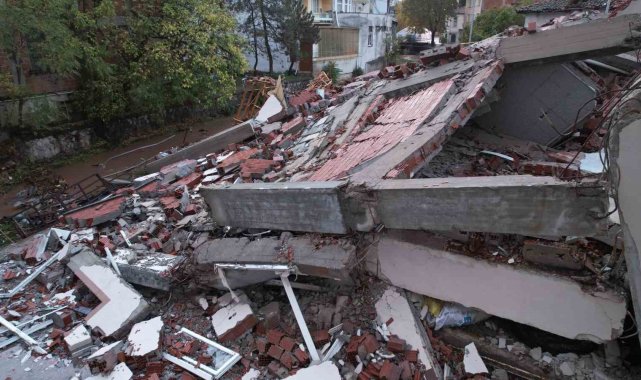 Sındırgı depreminde çöken binalar sabahın ilk ışıklarıyla böyle görüntülendi
