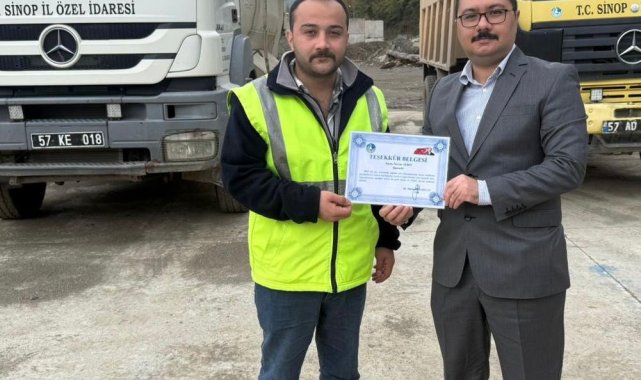 Sinop il özel idaresi personellerine 'teşekkür belgesi'
