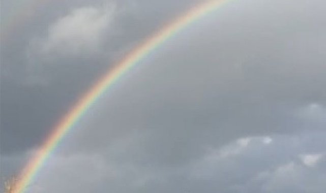 Sinop'ta ortaya çıkan çift gökkuşağı, vatandaşlar tarafından görüntülendi.Akliman Sahilinde ortaya çıkan çift gökkuşağı, şehrin doğal güzelliklerine adeta sihirli bir dokunuş kattı. Akliman sahilinin huzurlu atmosferiyle birleşen bu doğa harikası, bölgede bulunan vatandaşlar için görsel bir şölen sundu. Şehrin pek çok noktasından net bir şekilde görülebilen gökkuşağı, büyük ilgi gördü. Doğanın bu eşsiz gösterisi, kısa bir süreliğine de olsa gökyüzünü renk cümbüşüne çevirdi.