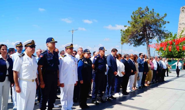 Sinop'ta, 1 Temmuz Denizcilik ve Kabotaj Bayramı kutlamaları çerçevesinde protokol tarafından denize çelenk bırakıldı.