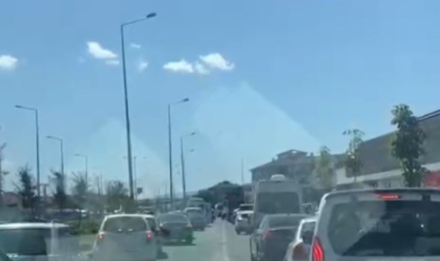 Düzce'de siren sesini duyan sürücüler, ambulansa fermuar sistemi uygulayarak yol verdi. Bu anlar cep telefonu kamerasıyla kaydedildi.