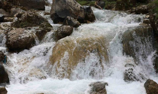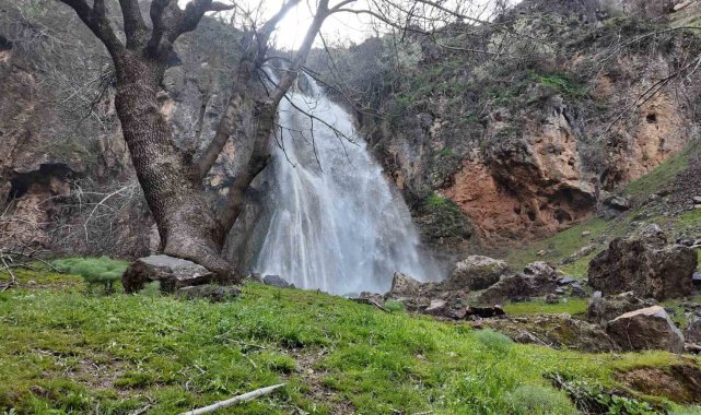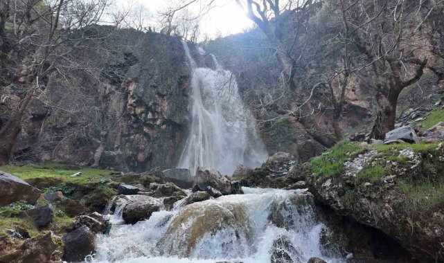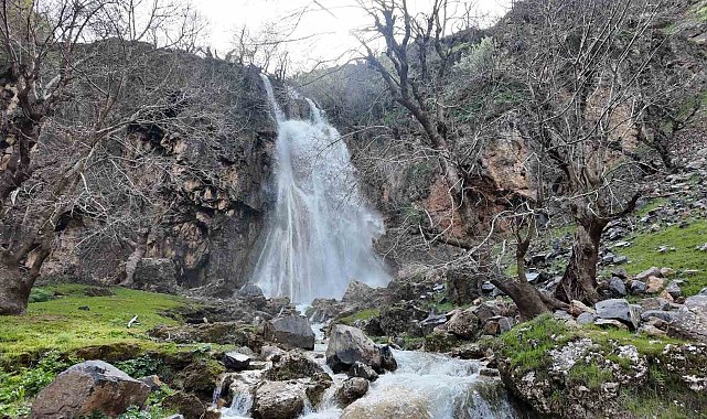 Şırnak'ta havaların ısınmasıyla beraber kar sularının erimesiyle 35 metre yükseklikten akan su görenleri hayretler içinde bıraktı.