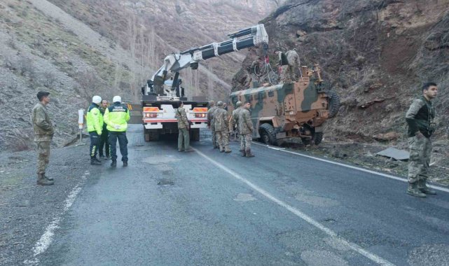 Şırnak'ın Uludere ilçesinde 2 askerin yaralandığı kazada, zırhlı askeri araç yoldan kaldırıldı.