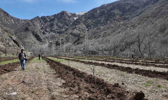 Şırnaklı çiftçi, devletten aldığı destekle 25 dönüm arazisine meyve fidanları dikti.Beytüşşebap ilçesine bağlı Mutluca köyünde devletin yüzde 70 hibesinden yararlanan çiftçi, 25 dönüm arazisinin tamamında meyve fidanları dikti. Hem kaymakamlık hem de İlçe Tarım ve Orman Müdürlüğü ortaklığında hayata geçen projeyle 3 çiftçi arsasında cennet hurması, ayva ve armut fidanları dikti. Devlet desteğiyle Bursa ilinden getirilen fidanlar, Şırnak dağlarında toprakla buluştu. Çiftçi İdris Öter, yıllardır boş arazisini değerlendirmek için devletten destek talep ettiğini ve talebinin olumlu karşılandığını söyledi. İlçede yüzde 70 hibeli bir proje olduğunu belirten Öter, "Sağ olsunlar hem Kaymakamımız Mehmet Furkan Taşkıran, hem de İlçe Tarım ve Orman Müdürümüz Salih Aktaş ve ekibi bize destek verdi. 25 dönüm üzerinde şimdi fidan dikimi yapıyoruz. İnşallah 3 yıl sonra verimini alacağız. Sürekli destek çıkan kurum amirlerimize çok teşekkür ederim. Destek verilirse köylünün tamamı boş arazisini değerlendirecektir" dedi.