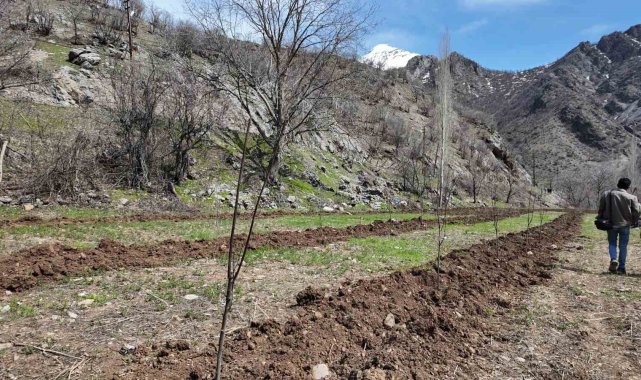 Şırnaklı çiftçi devlet desteğiyle bütün arazisine meyve fidanı dikti