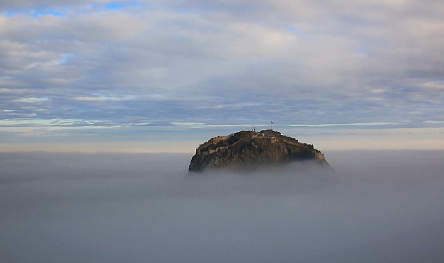 Sis bulutu altındaki tarihi Karahisar Kalesi mest etti