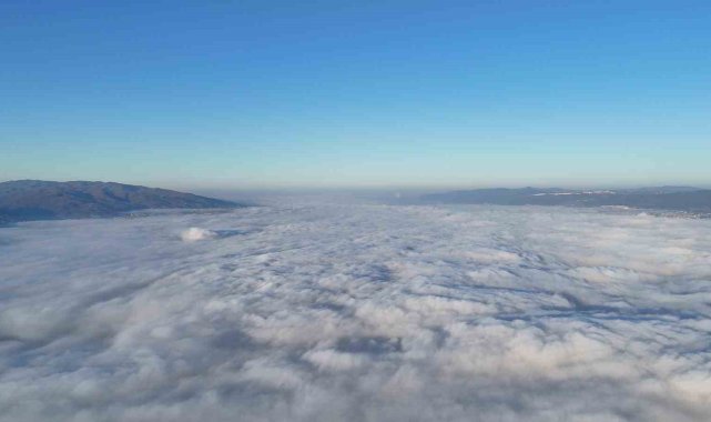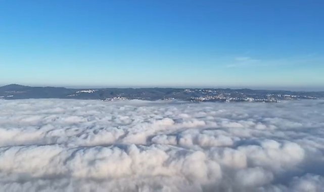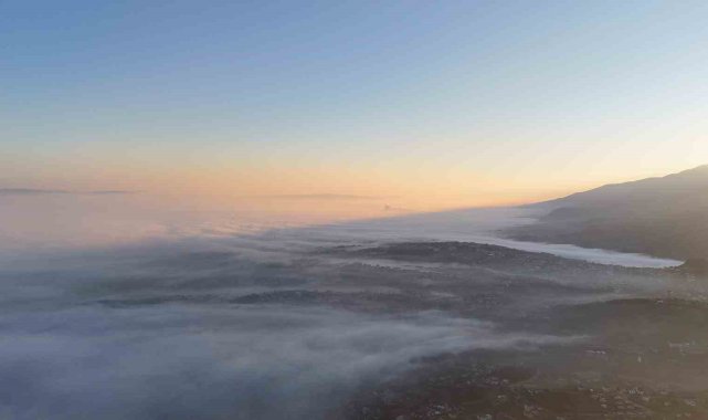 Kocaeli'de oluşan sis denizi ortaya kartpostallık manzaralar çıkardı. Kentin üzerini kaplayan sis bulutu havadan görüntülendi.