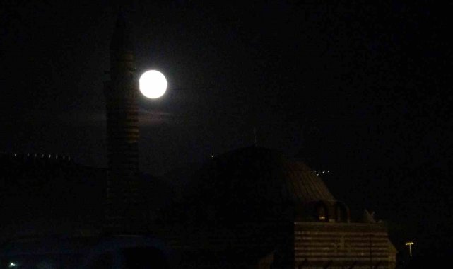 Van semalarında gece saatlerinde beliren şişkin ay, gökyüzünde adeta görsel bir şölen oluşturdu. Bulutsuz havada net şekilde izlenebilen ay, parlak ışığıyla kenti aydınlattı.