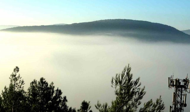 Muğla'nın Menteşe ilçesi, sabah saatlerinde etkili olan yoğun sisle adeta masalsı bir atmosfere büründü. Doğal güzelliklerin üzerini bembeyaz bir örtü gibi kaplayan sis bulutu, kenti tabloyu andıran manzaralarla süsledi.