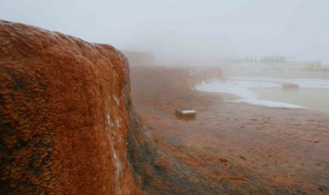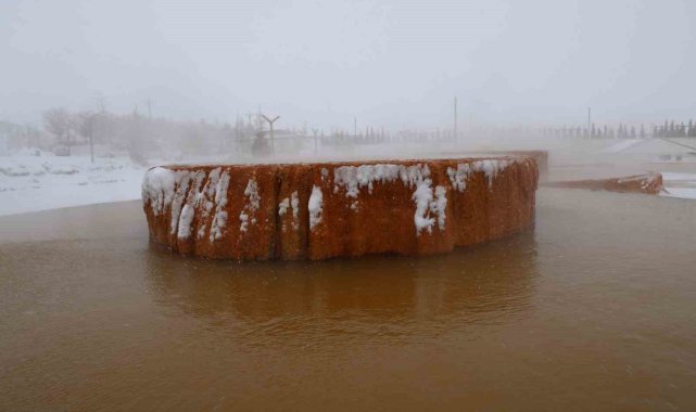 Sivas'ın Altınkale Travertenleri, yağan kar ile eşsiz görüntüler oluşturdu