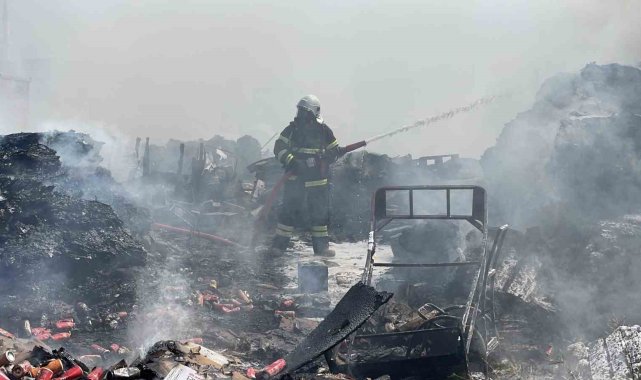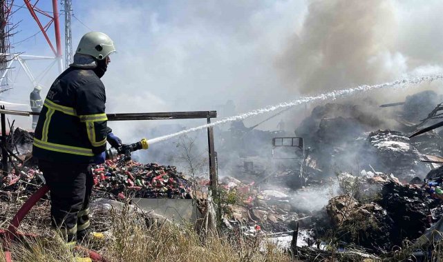 Sivas'ta atık malzemeler alev aldı, dumanı gökyüzünü kapladı