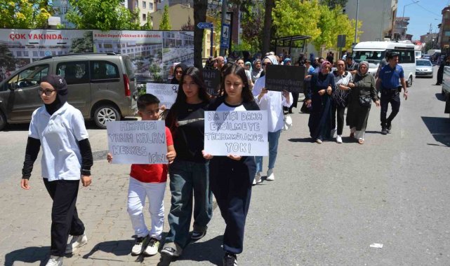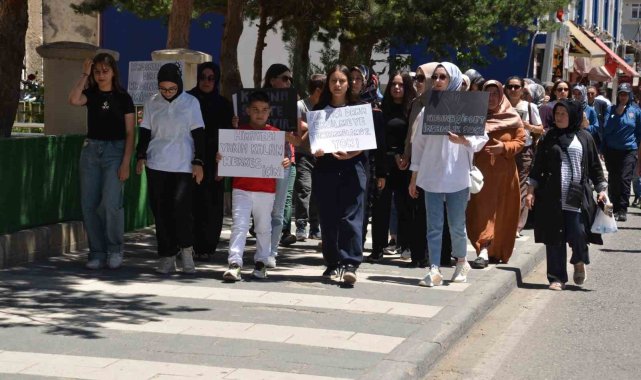 İlçe meydanında toplanan kalabalık, halk pazarına kadar yürüyerek slogan attı.