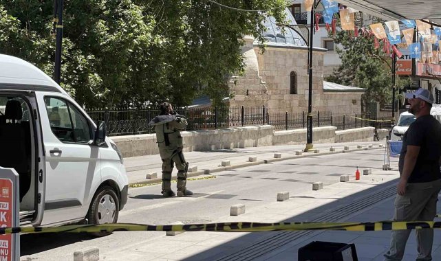 Sivas'ta cami bahçesinde bulunan şüpheli çanta paniğe neden oldu. Polis ekiplerinin fünye ile kontrollü şekilde patlattığı çantadan kıyafet çıktı.