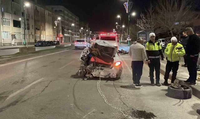 Sivas'ta üç kişinin yaralandığı kazada araç hurdaya döndü: O anlar kamerada
