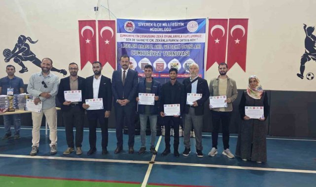 Şanlıurfa'nın Siverek ilçesinde, Cumhuriyet'in 102. yılı etkinlikleri kapsamında İlçe Milli Eğitim Müdürlüğü tarafından düzenlenen Liseler Arası 2. Akıl ve Zeka Oyunları Cumhuriyet Turnuvası büyük heyecana sahne oldu.Prof. Dr. Abdulkadir Karahan Fen Lisesi Spor Salonu'nda gerçekleştirilen turnuvaya, 9 lise ve 40 öğrenci katıldı. Öğrenciler Kulami, Mangala, Pentago, Küre ve Reversi kategorilerinde stratejik düşünme ve dikkat becerilerini ortaya koydu.Bir gün süren çekişmeli müsabakaların ardından dereceye giren öğrencilere ödülleri düzenlenen törenle verildi. Törene Siverek Kaymakamı Salih Sak, Belediye Başkanı Ali Murat Bucak, Cumhuriyet Başsavcısı Seçkin Şahan, 107. Topçu Alayı Komutanı Hüseyin Burma, İlçe Jandarma Komutanı Orçun Binay, öğretmenler, okul müdürleri ve öğrenciler katıldı.Siverek Akıl ve Zeka Oyunları Koordinatörü Mehmet Salih Yıldız, "Cumhuriyetimizin 102. yılı vesilesiyle bu yıl ikinci kez turnuvamızı düzenledik. Amacımız, öğrencilerimizin hem milli-manevi değerlerle yetişmesini hem de zekâ, strateji ve analitik düşünme becerilerini geliştirmektir. Bu yıl 9 okuldan 40 öğrencimiz katıldı ve 5 kategoride birincilerimiz belirlendi" dedi.Reversi kategorisinde tüm rakiplerini geride bırakarak birinci olan Prof. Dr. Abdulkadir Karahan Fen Lisesi öğrencisi Yağmur Güven ise "Kazandığım için çok mutluyum. Öncelikle beni yetiştiren anne ve babama teşekkür ediyorum. Kendimle gurur duyuyorum" diye konuştu.Turnuva sonunda dereceye giren öğrencilere madalya ve başarı belgeleri takdim edildi.