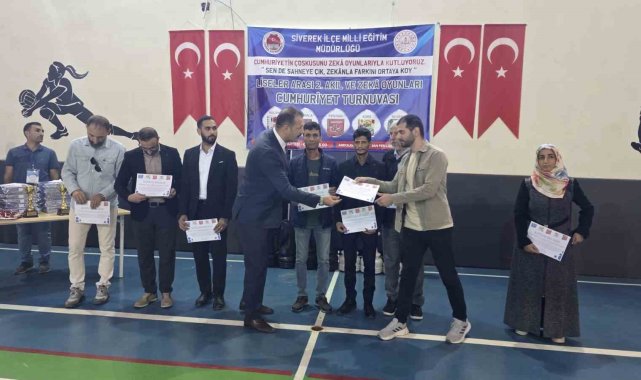 Şanlıurfa'nın Siverek ilçesinde, Cumhuriyet'in 102. yılı etkinlikleri kapsamında İlçe Milli Eğitim Müdürlüğü tarafından düzenlenen Liseler Arası 2. Akıl ve Zeka Oyunları Cumhuriyet Turnuvası büyük heyecana sahne oldu.