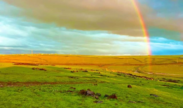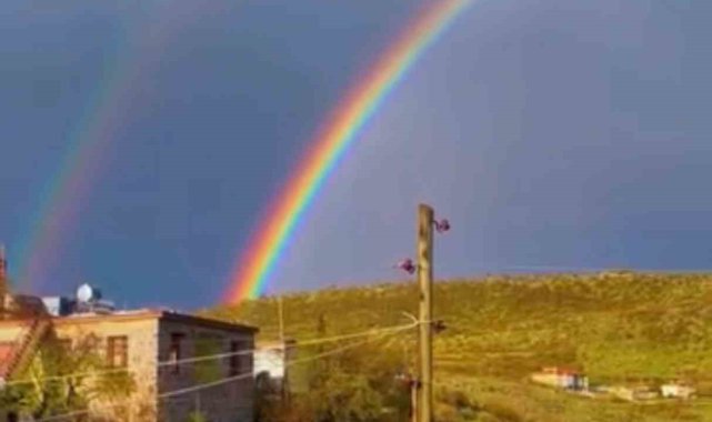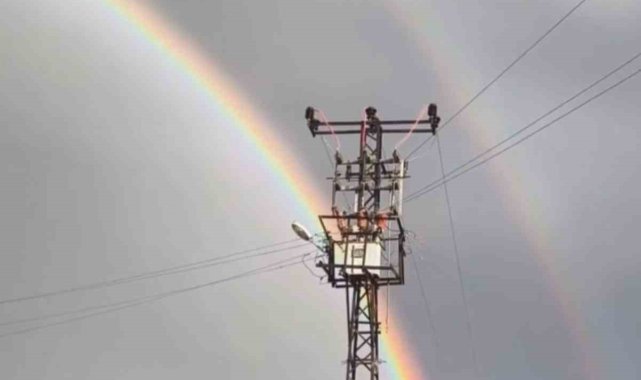 Şanlıurfa'nın Siverek ilçesinde sağanak yağışın ardından ortaya çıkan gökkuşağı eşsiz manzara oluşturdu.