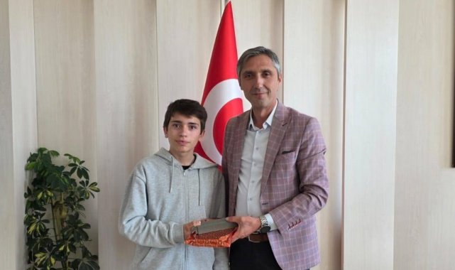 Bayburt'ta düzenlenen Ona Selam Ulusal Siyer-i Nebi Yarışması'nda dereceye giren öğrenciler belirlendi. Yarışmayı kazanan öğrenciler, İl Milli Eğitim Müdürü Ömer Faruk Kahraman'ı makamında ziyaret etti.