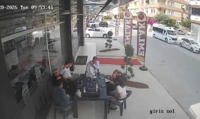 Mersin'in Tarsus ilçesinde bir emlakçı dükkanı önünde oturan vatandaşlar, karşı binanın 5. katından uçan tavuğun masalarına düşmesiyle kısa süreli panik yaşadı. O anlar güvenlik kamerasına yansıdı.