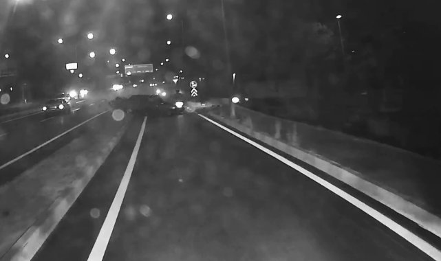 Öte yandan aynı istikamette seyir halinde olan cip içerisindeki araç kamerası kaza anını saniye saniye kaydetti.