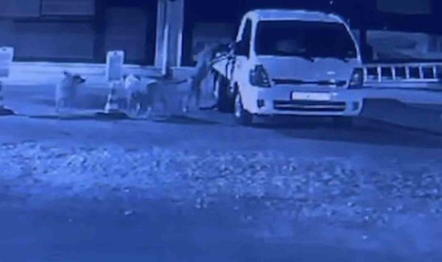 Sokak köpekleri park halindeki kamyoneti parçaladı: O anlar kamerada