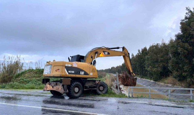 Söke Bağarası yolundaki taşkına ekiplerden anında müdahale