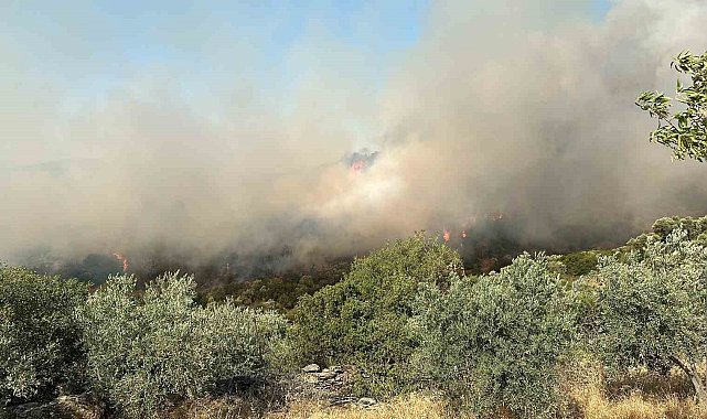 Aydın'ın Söke ilçesinde yerleşim yerlerine yakın bölgedeki zeytinlik alanda yangın çıktı. Ekiplerin yangına müdahalesi sürüyor.