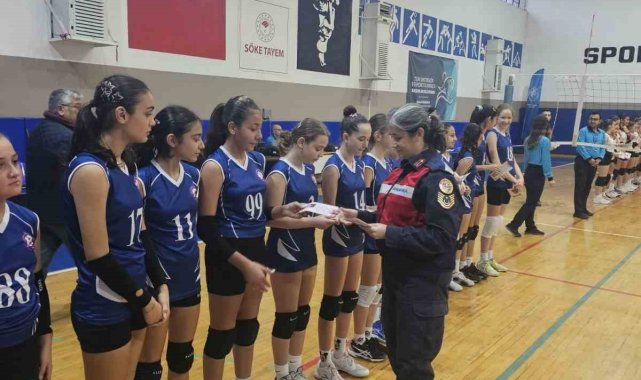 Aydın'ın Söke ilçesinde jandarma ekipleri voleybol maçı öncesi vatandaşları bilgilendirdi.