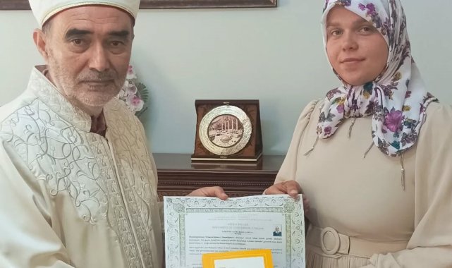 Aydın'ın Söke ilçesinde, Müslüman olmak isteyen Samantha Maria Muters için Söke İlçe Müftülüğü'nde 'İhtida Merasimi' gerçekleştirildi.