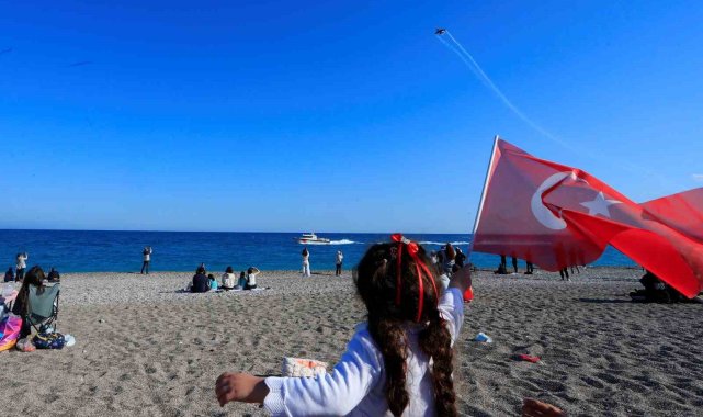 Türk Hava Kuvvetlerinin akrobasi ekibi SOLOTÜRK, 23 Nisan Ulusal Egemenlik ve Çocuk Bayramı kutlamaları kapsamında Antalya'ya düzenleyeceği gösteri öncesi prova uçuşu yaptı.TBMM 106. yıldönümü ve 23 Nisan Ulusal Egemenlik ve Çocuk Bayramı kapsamında, Türk Hava Kuvvetleri F-16 Akrobasi Timi SOLOTÜRK Antalya'da düzenleyeceği gösteri öncesi prova uçuşu yaptı. Konyaaltı Sahili ve Olbia Kent Meydanı'nda düzenlenecek gösteri öncesi Antalya semalarında prova uçuşu gerçekleştiren SOLOTÜRK izleyenleri hayran bıraktı. Konyaaltı Sahili'ne gelen binlerce vatandaşa unutulmaz anları cep telefonları ile fotoğraflayarak kayda aldı. Bazı vatandaşlar ise gösteriyi yönetmek üzere Olbia Kent Meydanı'nda bulunan SOLOTÜRK pilotları ile fotoğraf çekinerek tişörtlerini imzalattı.Prova uçuşunu izleyen ve sıkı bir SOLOTÜRK hayranı olduğunu söyleyen Mehmet Can Yürekli, "Havacılığa tutkulu, fotoğrafçılığa meraklı bir gencim. SOLOTÜRK gösterilerini hayranlıkla bekliyorum. Antalya, Ankara ve İstanbul'da izledim. Gösteri her zamanki gibi bomba gibi, çok zevkli, beğenerek her gösterisini izliyorum" dedi.Tişörtünü Pilot Binbaşı M. Erhan Aydemir'e imzalatan bir genç ise, "Çok heyecanlı ve muhteşem bir gösteriydi. 2014 yılında 23 Nisan'da Türk Yıldızları'nın Antalya gösterisinde izledim ilk olarak. O zamandan bu yana gelen bir sevda. Çok gurur verici, heyecanlıydı" ifadelerini kullandı. 23 Nisan SOLOTÜRK gösterisi, saat 17.00'da Antalya Olbia Kent Meydanı, Konyaaltı Sahili'nde yapılacak.