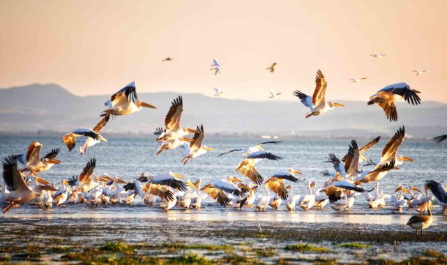 Balıkesir'deki Manyas Kuş Cenneti, sonbahar aylarında pelikanlar ve flamingolarla adeta bir doğa şölenine sahne oluyor.