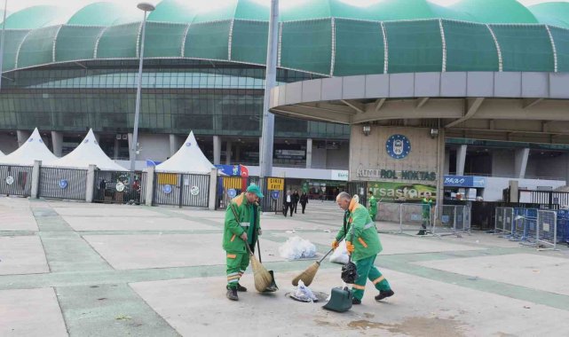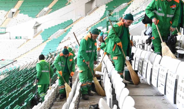 Bursa'nın en değerli markası Bursaspor'a maddi manevi her alanda destek olan Osmangazi Belediyesi, maçların ardından stadyumun içinin ve çevresinin temizliğine de destek veriyor.