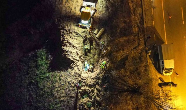 SASKİ, 15 Temmuz Camili Mahallesi'ne içme suyu temin eden hatta meydana gelen arıza için gece boyunca sahadaydı. Sabahın ilk ışıklarına kadar çalışan ekipler hattın onarımını 05.00'da tamamlayarak bölgeye kısa sürede su temin etti.Sakarya Büyükşehir Belediyesi Su ve Kanalizasyon İdaresi (SASKİ), 24 saat esasıyla çalışarak altyapı hatlarında meydana gelen olumsuzluklara anında müdahale ediyor. Dış etkenler ve basınç gibi faktörlerden kaynaklanan arızaların abonelerin hayatına minimum düzeyde etki etmesi için anlık kesintiler hızla çözüme kavuşturuluyor. Dün gece saatlerinde 15 Temmuz Camili Mahallesi'ndeki abonelere su ileten hatta meydana gelen arızanın ardından hızla harekete geçen ekipler sabahın ilk saatlerine kadar yoğun bir çalışma yürüttü. Teknik ekiplerin özverili çalışmalarıyla arıza kısa sürede onarıldı ve bölgeye yeniden su verildi.SASKİ Genel Müdürü Yiğit Turan, gece boyunca devam eden çalışmaları yerinde inceledi. Turan, yaptığı açıklamada "15 Temmuz Camili Mahallesi'ndeki içme suyu hattında meydana gelen arızaya ekiplerimiz hızlı bir şekilde müdahale etti. Bölge sakinlerinin mağduriyet yaşamaması için gece boyunca çalıştık ve arızayı giderdik. Altyapı hatlarımızı periyodik olarak kontrol ediyoruz. Bu tür arıza veya kaçak durumunda hızlı müdahale için ekiplerimiz 7/24 nöbette" ifadelerini kullandı.