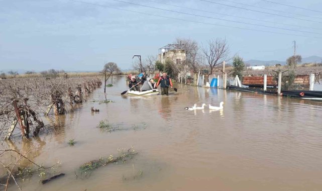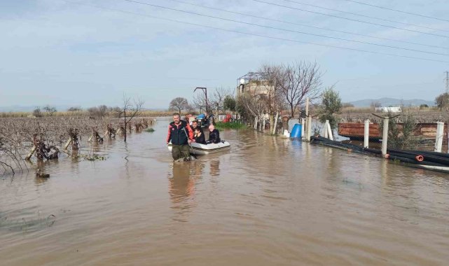 Manisa'da etkili olan sağanak yağış hayatı olumsuz etkiledi. Şehzadeler ilçesinde su baskını nedeniyle mahsur kalan 1 yetişkin ve 4 çocuk, itfaiye ekiplerinin zamanında müdahalesiyle botla güvenli alana tahliye edildi.Manisa genelinde etkili olan sağanak yağış sonrası bazı mahallelerde su birikintileri ve taşkınlar meydana geldi. Özellikle Manisa'nın Şehzadeler ilçesine bağlı Kuşlubahçe Mahallesi'nde yükselen su seviyesi nedeniyle 1 yetişkin ve 4 çocuk bulundukları adreste mahsur kaldı.İhbar üzerine bölgeye sevk edilen Manisa Büyükşehir Belediyesi İtfaiye Dairesi Başkanlığı ekipleri, kısa sürede olay yerine ulaştı. Ekipler, mahsur kalan 5 kişiyi bot yardımıyla bulundukları noktadan alarak güvenli alana çıkardı.Sağlık durumlarının iyi olduğu öğrenilen vatandaşların tedbir amaçlı kontrolleri yapılırken, bölgede su tahliye ve güvenlik çalışmalarının sürdüğü bildirildi. Yetkililer, vatandaşları olumsuz hava şartlarına karşı dikkatli ve tedbirli olmaları konusunda uyardı.