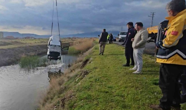 Su dolu kanala gömülmüş araç ekipleri alarma geçirdi