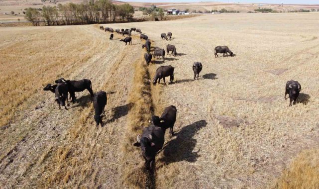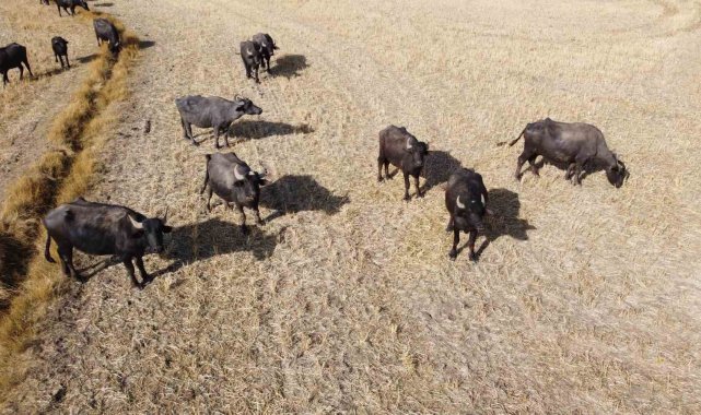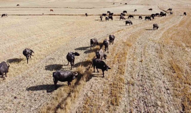 Suyu ve serinliği seven, sütüyle şifa kaynağı olan mandalar, Yozgat merkeze bağlı İşleğen köyünde hasat edilmiş tarlalarda yayılarak kışa hazırlanıyor. Yüksek besin değerine sahip sütü, yoğurdu, kaymağı ve peyniriyle sofraların vazgeçilmezi haline gelen mandalar, bölge üreticilerinin gözdesi oldu. Devlet desteği sağlanan mandalar, hem ekonomiye hem de yöresel üretime katkı sağlıyor.