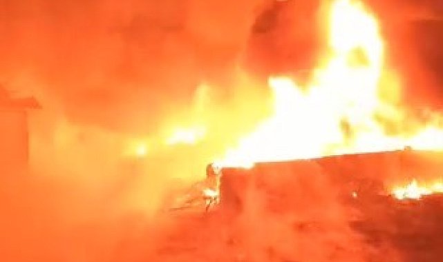 Konya'nın Karapınar ilçesinde bir depoda çıkan yangında 6 bin takım plastik sulama borusu alev alev yandı.