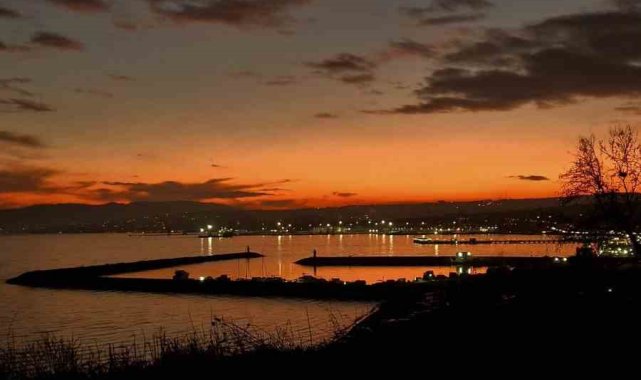 Marmara Denizi'nin kıyısında bulunan Tekirdağ'ın Süleymanpaşa ilçesi, gün batımında ortaya çıkan manzarayla görenleri kendine hayran bıraktı.